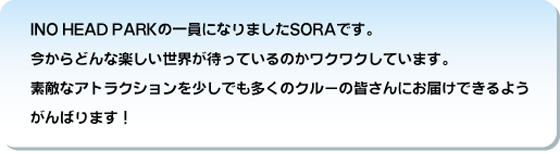 INO HEAD PARKとSORAを引き続き、応援して下さいね!